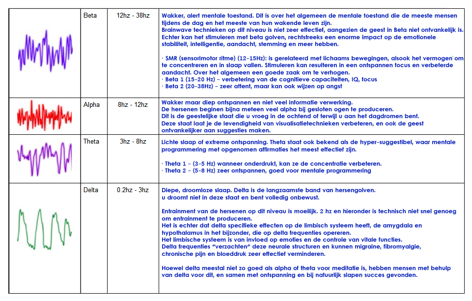 Hieronder heb je de verschillende soorten "Brainwaves"